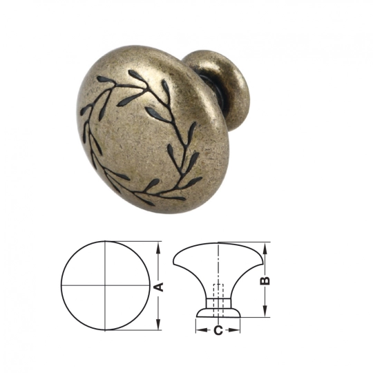 Quả đấm, Tay nắm cổ điển, hợp kim kẽm Lớp phủ hoàn thiện: Màu đồng thau cổ
