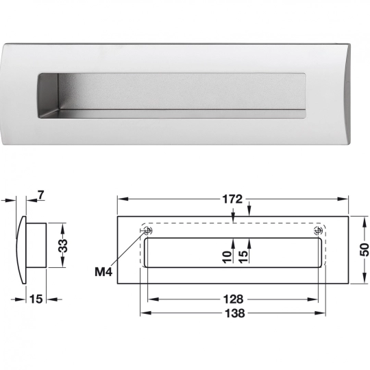 151.22.600 - Tay nắm âm 172 X 50 MMM, Màu Niken mờ