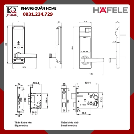 Kích thước mặt khóa trong: | 74 x 230 x 34 mm |