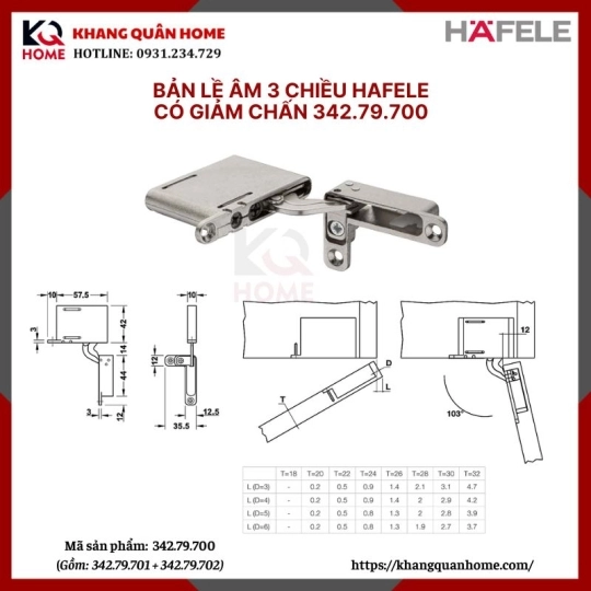 Hướng Dẫn Lắp Đặt Bản lề âm 3 chiều Häfele 342.79.700