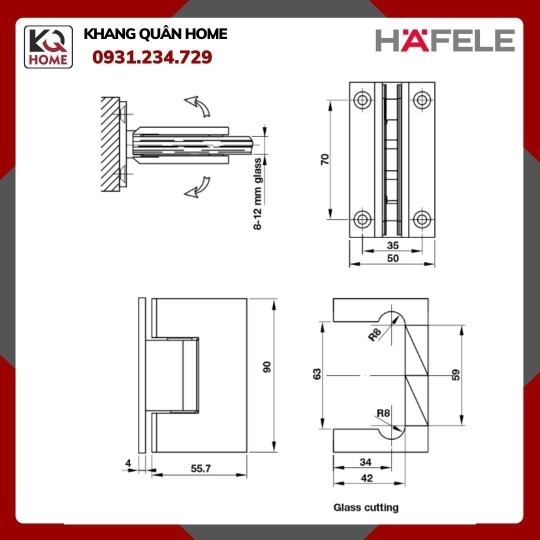 Bản Lề Phòng Tắm Kính 90º Hafele 981.77.900