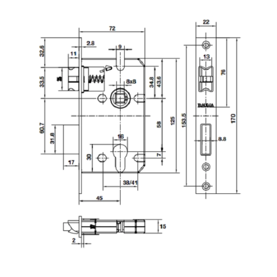 HVNHome cung cấp BAUMA THÂN KHÓA H5845-911.25.561 - DÙNG CHO CỬA GỖ TỰ NHIÊN, CÔNG NGHIỆP, NHỰA GIẢ GỔ, ABS VÀ CỬA SẮT.