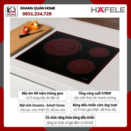 - Bếp điện 03 vùng nấu, lắp đặt âm chính hãng HAFELE
