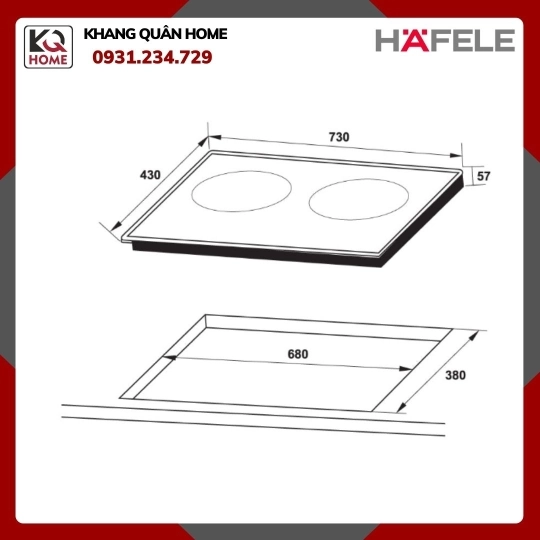 - Bếp từ lắp đặt âm, 02 vùng nấu, chính hãng HAFELE