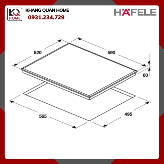 - Kích thước mặt bếp: 590R x 520S x 60C mm