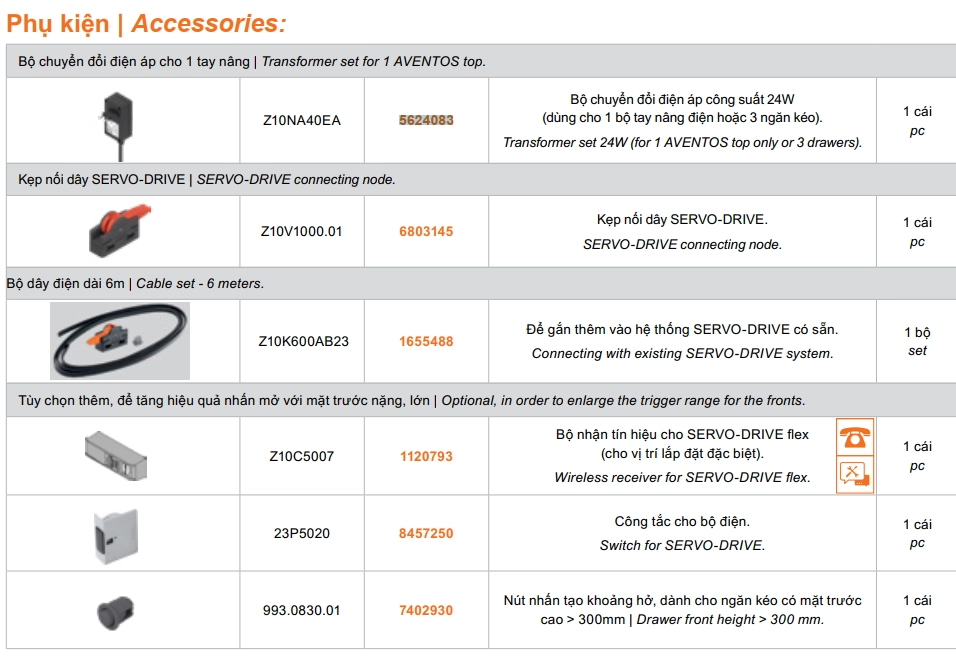 Bộ Chuyển Đổi Điện Áp Blum Cho 1 Tay Nâng Z10NA40EA 5624083