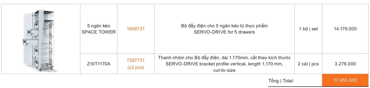 Khi đặt mua SERVO-DRIVE cho ngăn kéo cần có những bộ phận sau: