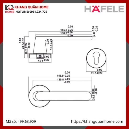 + Các sản phẩm của KHANG QUÂN HOME là sản phẩm Hafele được nhập khẩu và phân phối chính hãng tại Việt Nam. Mọi chính sách bán hàng và bảo hành theo quy định của hãng Hafele sản xuất.