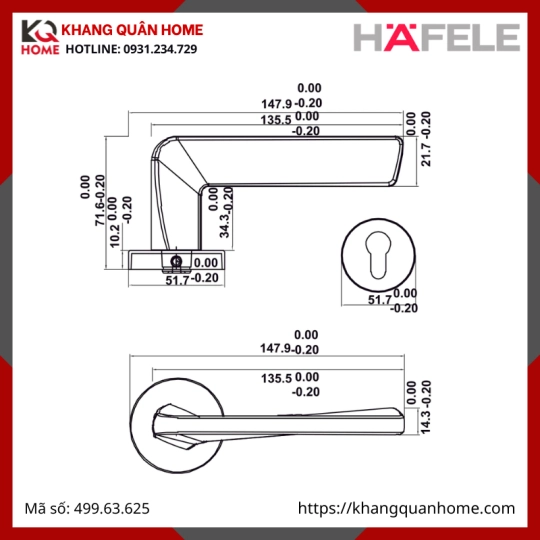 + Các sản phẩm của KHANG QUÂN HOME là sản phẩm Hafele được nhập khẩu và phân phối chính hãng tại Việt Nam. Mọi chính sách bán hàng và bảo hành theo quy định của hãng Hafele sản xuất.