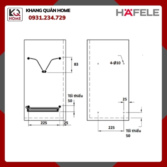 + Các sản phẩm của KHANG QUÂN HOME là sản phẩm Hafele được nhập khẩu và phân phối chính hãng tại Việt Nam. Mọi chính sách bán hàng và bảo hành theo quy định của hãng Hafele sản xuất.