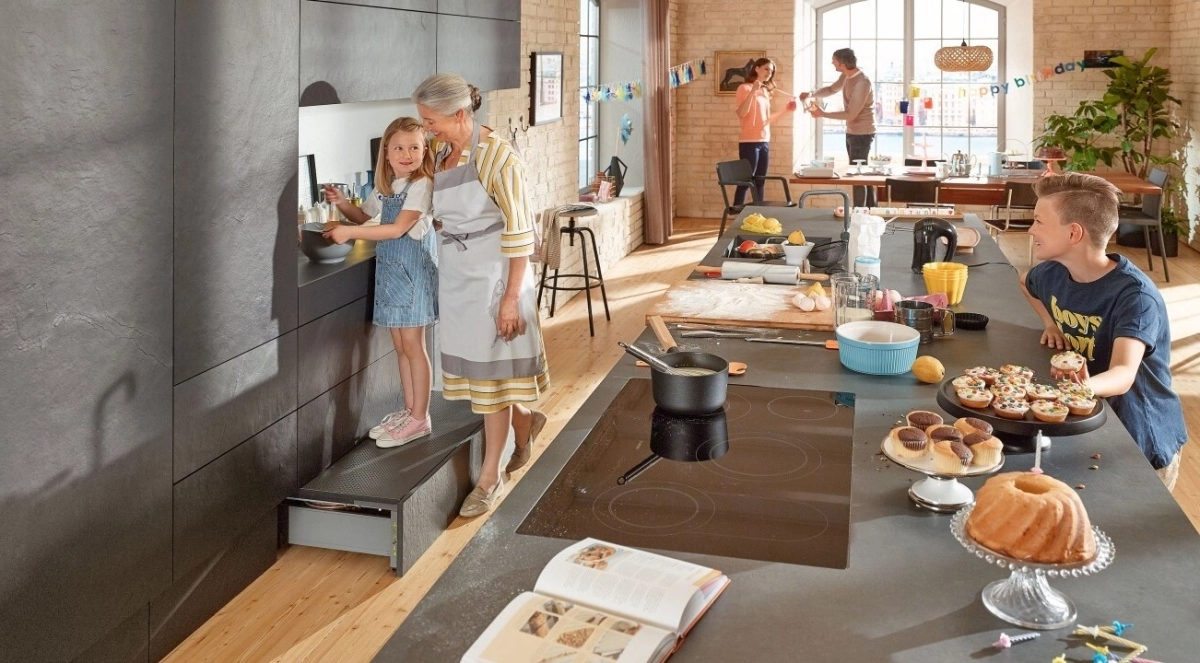 >> Kết hợp Bục thang ngăn kéo SPACE STEP cùng với Ray hộp Blum