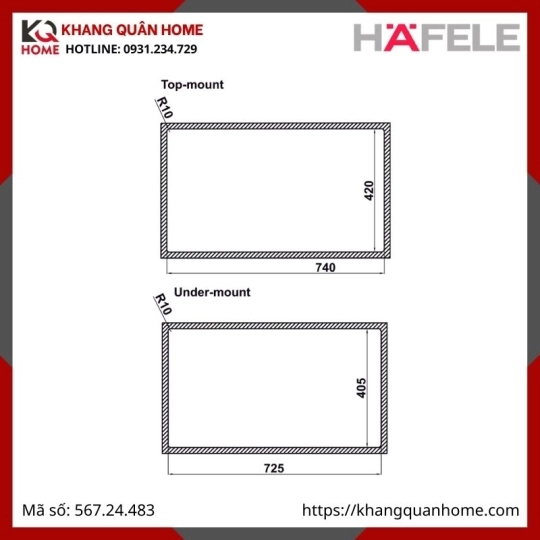 + Chậu rửa nhỏ Häfele 398: 567.24.494, 567.24.495, 567.24.496