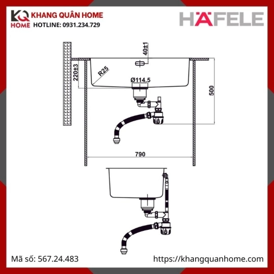 - Khe thoát nước : Khe thoát nước cải tiến, hiện đại hơn. Kết hợp cùng logo Hafele sang trọng