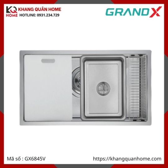 CHẬU RỬA CHÉN 1 HỘC INOX 304 GRANDX GX6845V VOLCANO