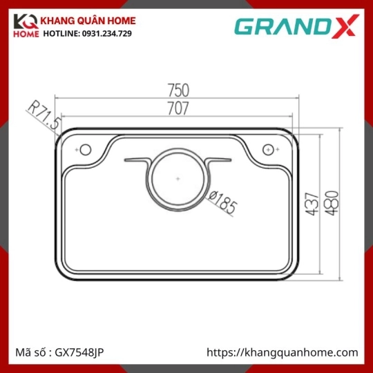 CHẬU RỬA CHÉN 1 HỘC INOX 304 GRANDX GX7548JP HIKARI