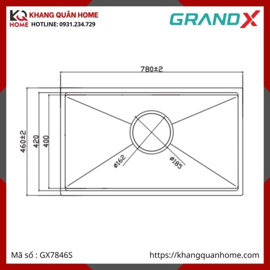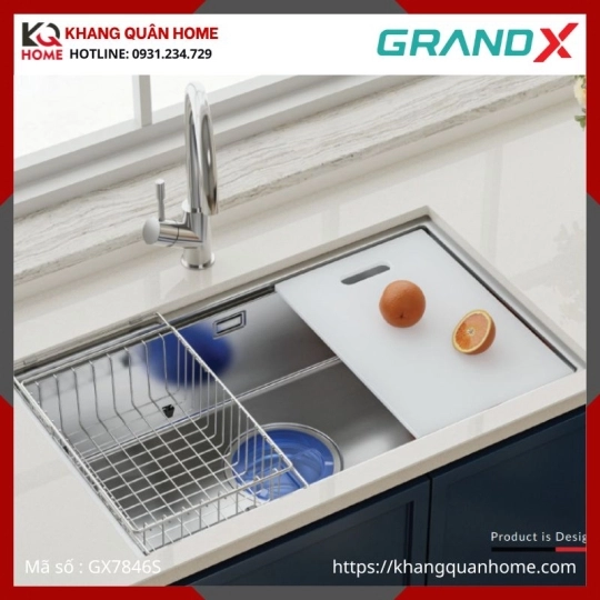 CHẬU RỬA CHÉN 1 HỘC INOX 304 GRANDX GX7846S SMOOTH