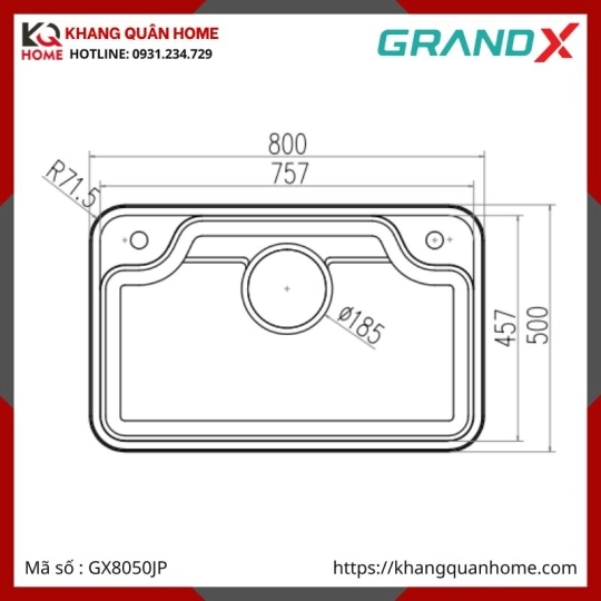 CHẬU RỬA CHÉN 1 HỘC INOX 304 GRANDX GX8050JP HIKARI