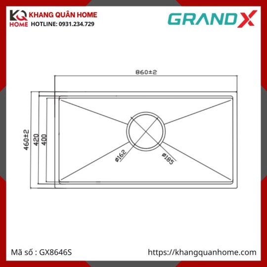 CHẬU RỬA CHÉN 1 HỘC INOX 304 GRANDX GX8646S SMOOTH