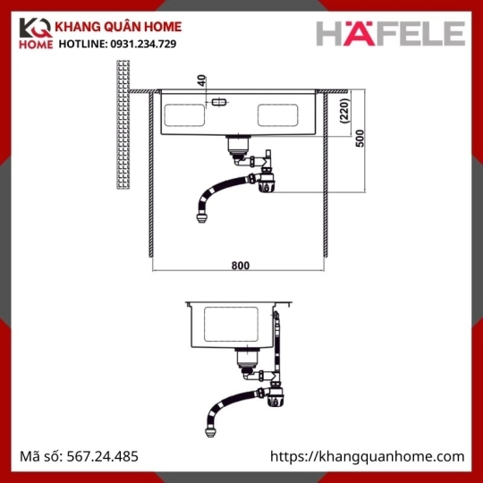 - Khe thoát nước : Khe thoát nước cải tiến, hiện đại hơn. Kết hợp cùng logo Hafele sang trọng