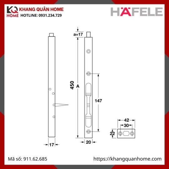 + Các sản phẩm của KHANG QUÂN HOME là sản phẩm Hafele được nhập khẩu và phân phối chính hãng tại Việt Nam. Mọi chính sách bán hàng và bảo hành theo quy định của hãng Hafele sản xuất.