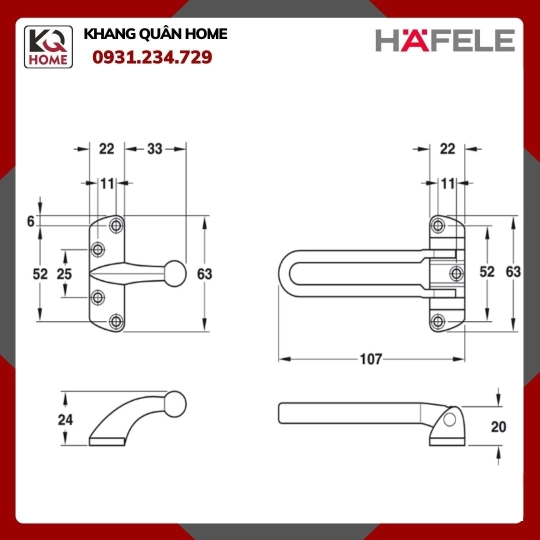 + Các sản phẩm của KHANG QUÂN HOME là sản phẩm Hafele được nhập khẩu và phân phối chính hãng tại Việt Nam. Mọi chính sách bán hàng và bảo hành theo quy định của hãng Hafele sản xuất.