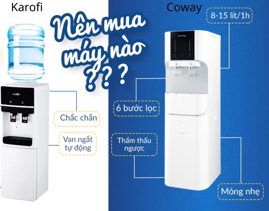 Máy lọc nước ngày càng trở thành thiết bị không thể thiếu trong mỗi gia đình Việt Nam. Trong số rất nhiều thương hiệu trên thị trường, Coway và Karofi là hai cái tên tiêu biểu được người dùng tin tưởng. Vậy Coway và Karofi khác nhau thế nào? Nên lựa chọn máy lọc nước nào để an toàn và tiết kiệm? Bài viết sau đây sẽ đem đến cho bạn cái nhìn tổng quan, so sánh chi tiết giúp bạn chọn được máy lọc nước phù hợp nhất.