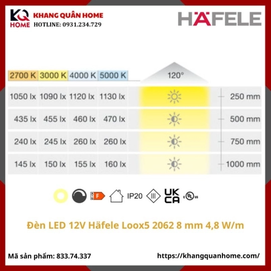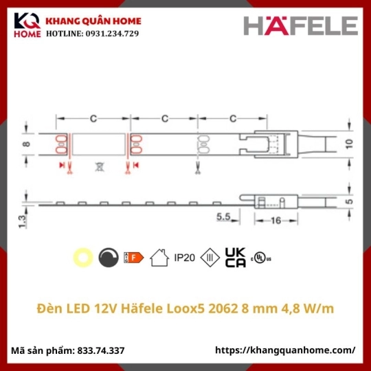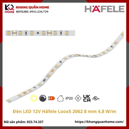 [New]Đèn LED 12V Häfele Loox5 2062 8 mm 3000K 4,8 W/m-833.74.337