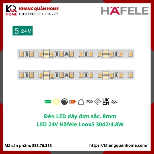 [New]Đèn LED 24V Häfele Loox5 3042 8 mm 4000K 4,8 W/m-833.76.318