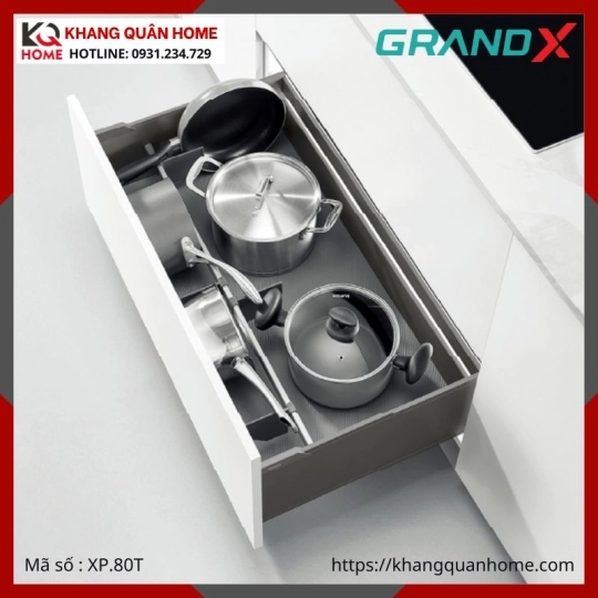 • Giá xoong nồi GrandX sử dụng thiết kế hộc kéo con bên trong ngăn kéo để phù hợp công năng, linh hoạt về lưu trữ tối ưu hóa về không gian, bố cục lưu trữ đồ dùng.