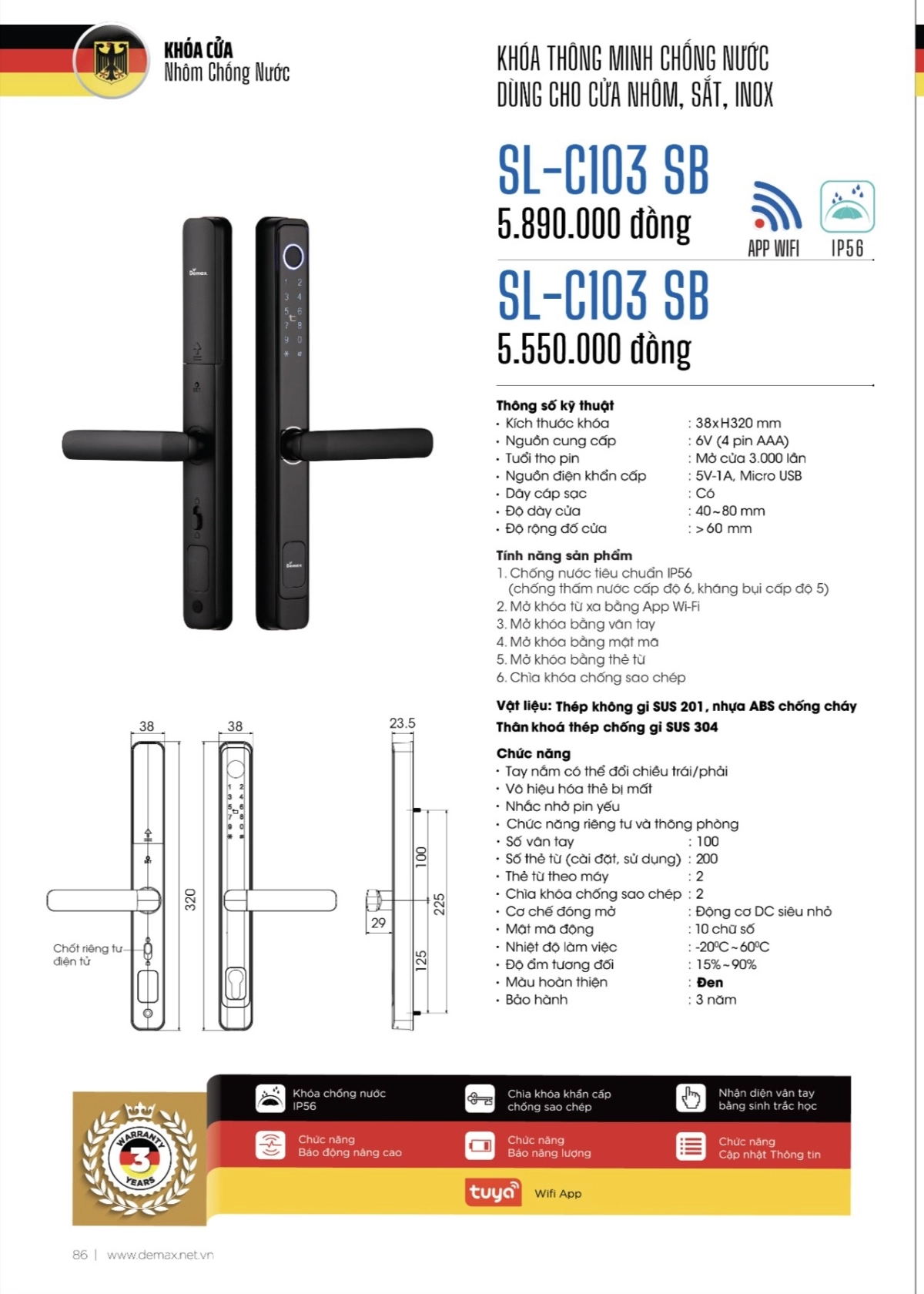 KHÓA THÔNG MINH CHỐNG NƯỚC DEMAX SL-C103 SB