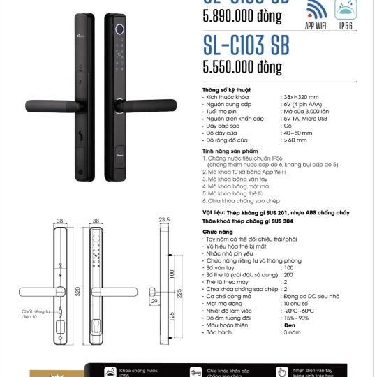• Tuổi thọ pin: Mở cửa 3000 lần