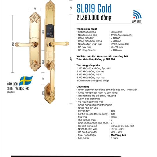 KHÓA THÔNG MINH DEMAX SL819 GOLD - APP WIFI