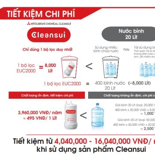 - Cleansui kiềm EU301 là dòng cao cấp nhất -Sản xuất bởi Tập đoàn Mitsubishi, 100% từ Nhật Bản.
