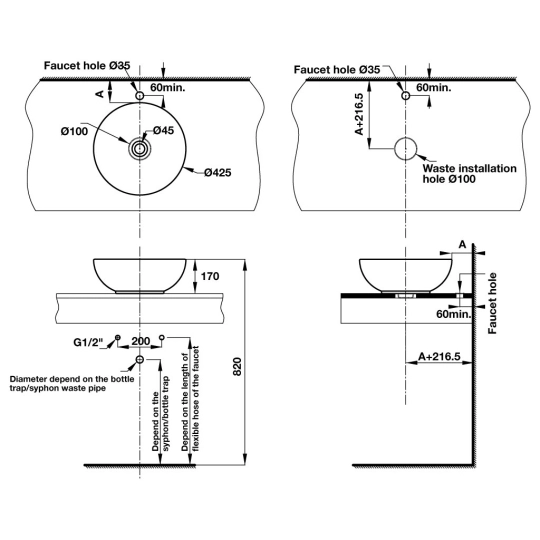 Thông tin của Lavabo đặt bàn COMPACT HAFELE 588.82.202