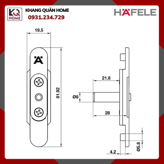 + Các sản phẩm của KHANG QUÂN HOME là sản phẩm Hafele được nhập khẩu và phân phối chính hãng tại Việt Nam. Mọi chính sách bán hàng và bảo hành theo quy định của hãng Hafele sản xuất.
