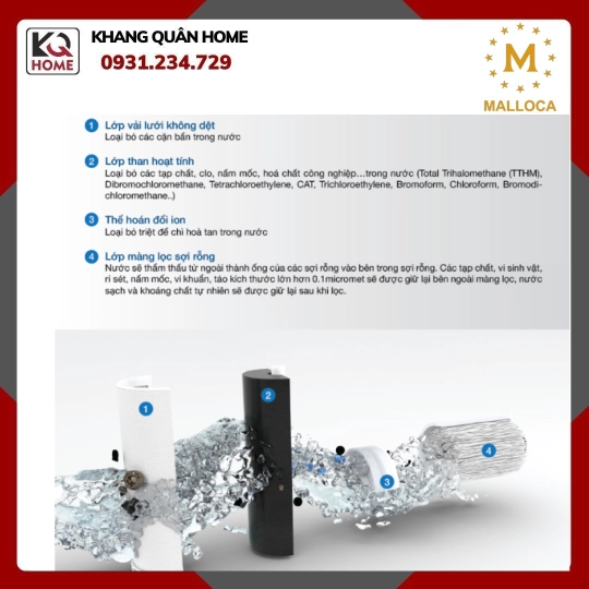 Lọai bỏ tạp chất, chì hòa tan, kim loại nặng, nấm mốc và vi khuẩn kích thước nhỏ tới 0.1 Micromet