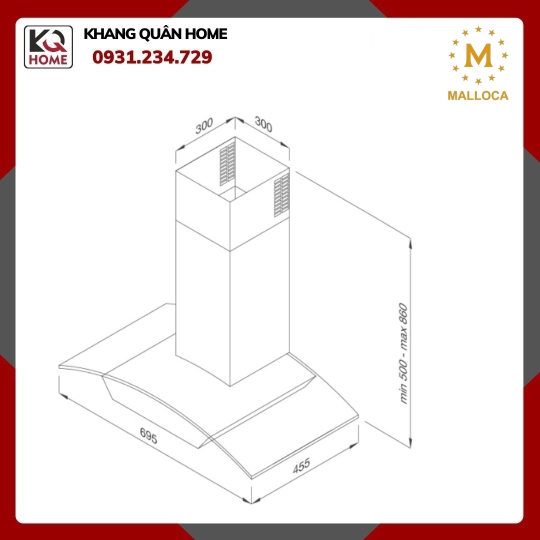 Máy hút khói khử mùi Malloca – áp tường MC 7018HS