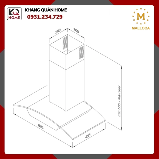 Máy hút khói khử mùi Malloca – áp tường MC 9018HS