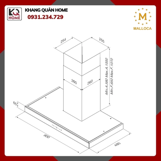 Máy hút khói khử mùi Malloca – áp tường Skylight F-213