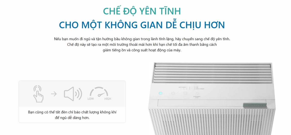• Chế độ yên tĩnh: Hoạt động êm ái, lý tưởng để ngủ hoặc dùng ban đêm.