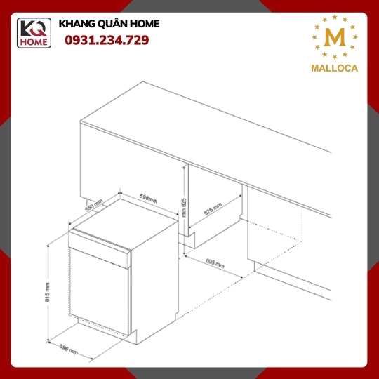 Máy rửa chén Malloca âm tủ hoàn toàn WQP12-J7713FB