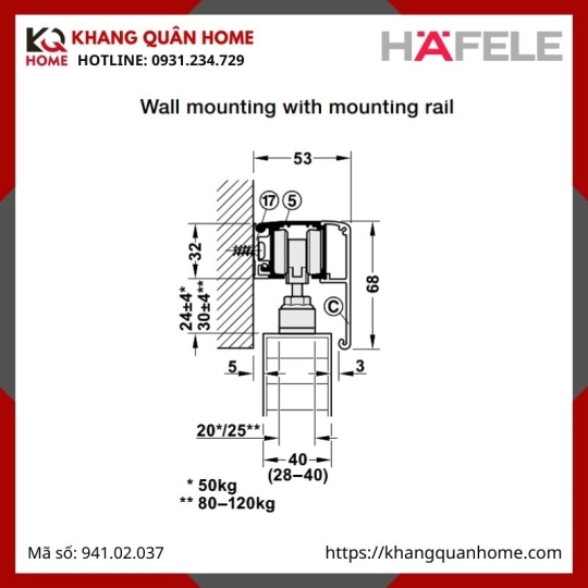 Phụ Kiện Cửa Trượt Slido Classic 120P Hafele 941.02.037