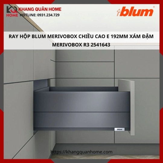 RAY HỘP BLUM MERIVOBOX CAO E 192MM XÁM ĐẬM MERIVOBOX R3 2541643