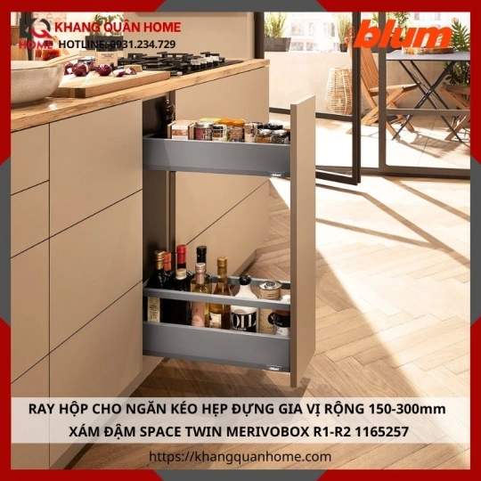 RAY HỘP CHO NGĂN KÉO HẸP ĐỰNG GIA VỊ RỘNG 150-300mm XÁM ĐẬM SPACE TWIN MERIVOBOX R1-R2 1165257
