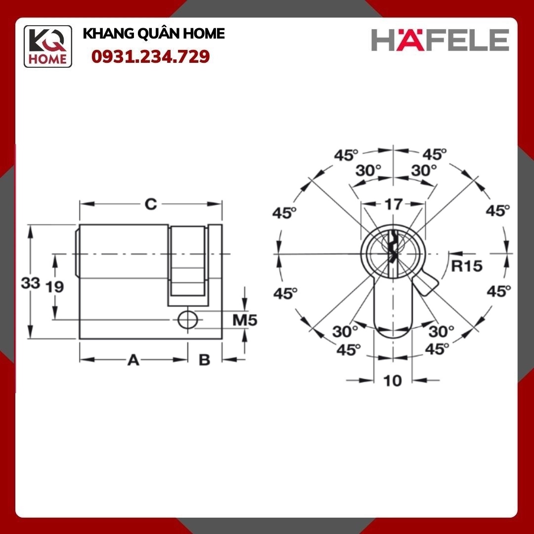 Ruột khóa chống cạy : Cấu trúc đặc biệt của ruột khóa HAFELE đảm bảo ngăn chặn hành vi cạy khóa