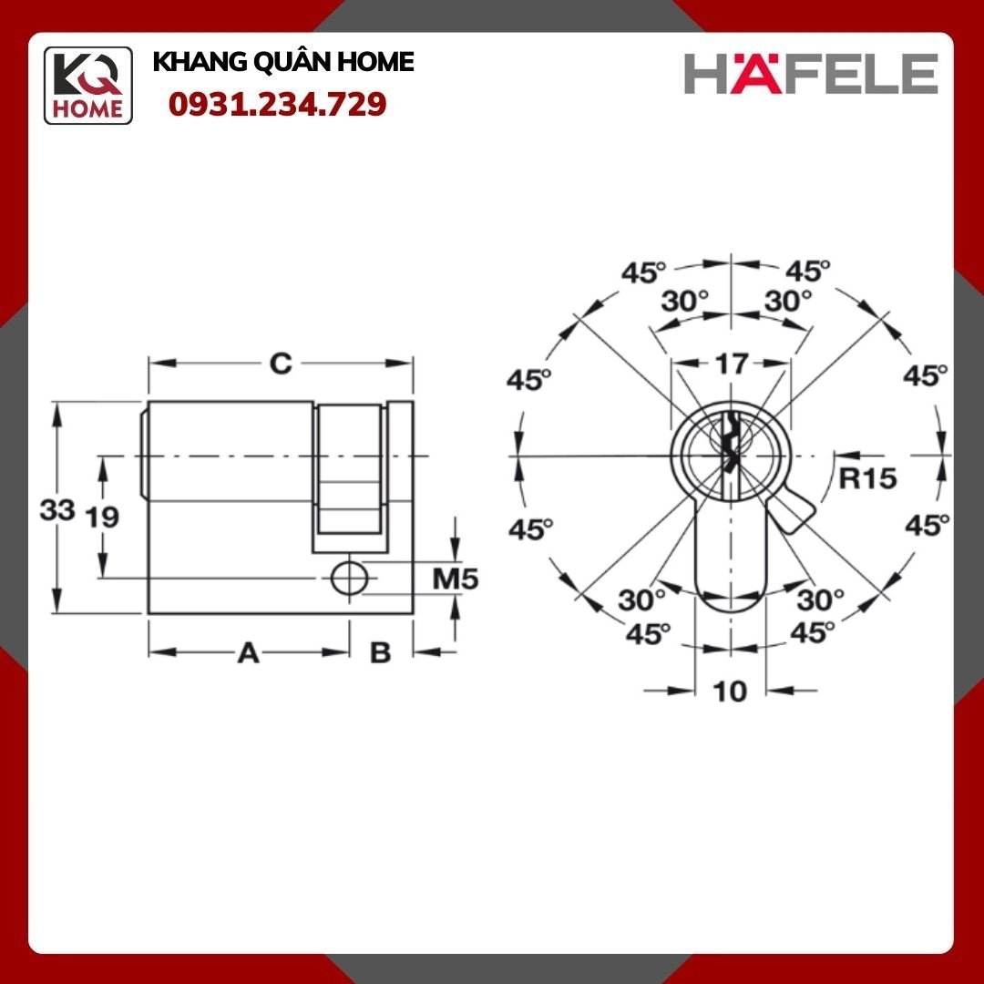 Ruột khóa chống cạy : Cấu trúc đặc biệt của ruột khóa HAFELE đảm bảo ngăn chặn hành vi cạy khóa
