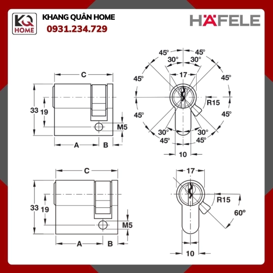 + Các sản phẩm của KHANG QUÂN HOME là sản phẩm Hafele được nhập khẩu và phân phối chính hãng tại Việt Nam. Mọi chính sách bán hàng và bảo hành theo quy định của hãng Hafele sản xuất.