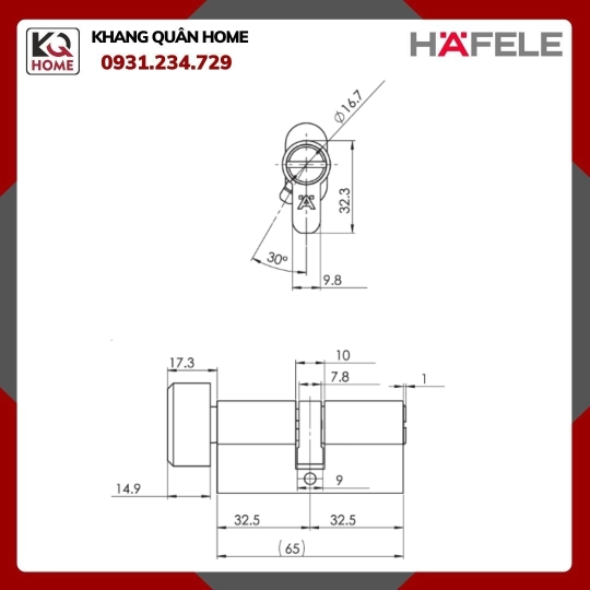 Ruột Khóa 65mm 1 Đầu Vặn 1 Đầu Chìa Hafele 489.56.252