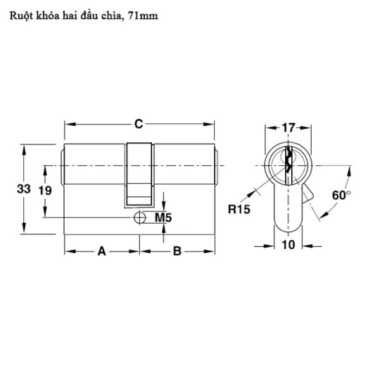 Thông tin kỹ thuật RUỘT KHÓA INOX 2 ĐẦU CHÌA KHÓA