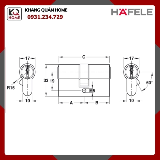 RUỘT KHÓA 2 ĐẦU CHÌA 65MM HAFELE 916.96.601